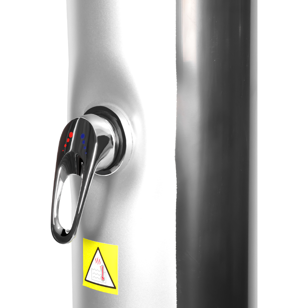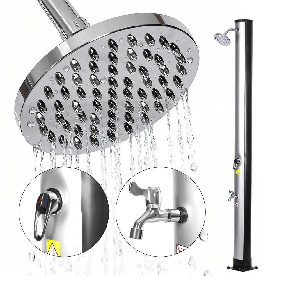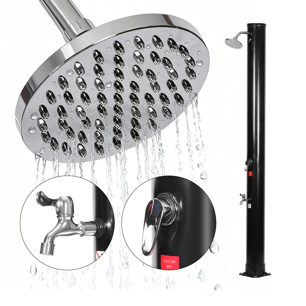 أنبوب الدش ذو الحجم الكبير لهذا الدش الشمسي الصديق للبيئة المحمول LY35L06 يستغل قوة الشمس لتسخين المياه حتى 60 درجة مئوية، ولا يتطلب كهرباء ويوفر حلاً صديقًا للبيئة للاستحمام في الهواء الطلق. ما عليك سوى توصيل خرطوم حديقة قياسي لملء أنبوب الدش، ويمكن لجميع أفراد العائلة الاستمتاع بدش منعش في الحديقة أو بجانب حمام السباحة أو في رحلة تخييم. صينية معدنية مدمجة عملية تحافظ على مستلزمات الاستحمام الأساسية مثل الصابون والشامبو في متناول اليد، بينما تمنع فتحات التصريف في الأسفل الماء من التجمع، مما يضمن تجربة نظيفة وممتعة. يتيح لك رأس الدش المطري القابل للدوران بزاوية 360 درجة، والمثبت على وصلة كروية مدمجة، ضبط اتجاه تدفق المياه بسهولة، مما يخلق إحساسًا ممتعًا بالبرودة، بينما توفر حنفية شطف القدم الإضافية طريقة مريحة للانتعاش بسرعة. تم تصميم هذا الدش لتوفير الراحة، ويمكن تفكيكه بسهولة للتخزين المدمج والموفر للمساحة خلال غير موسمها أو للنقل أثناء السفر.