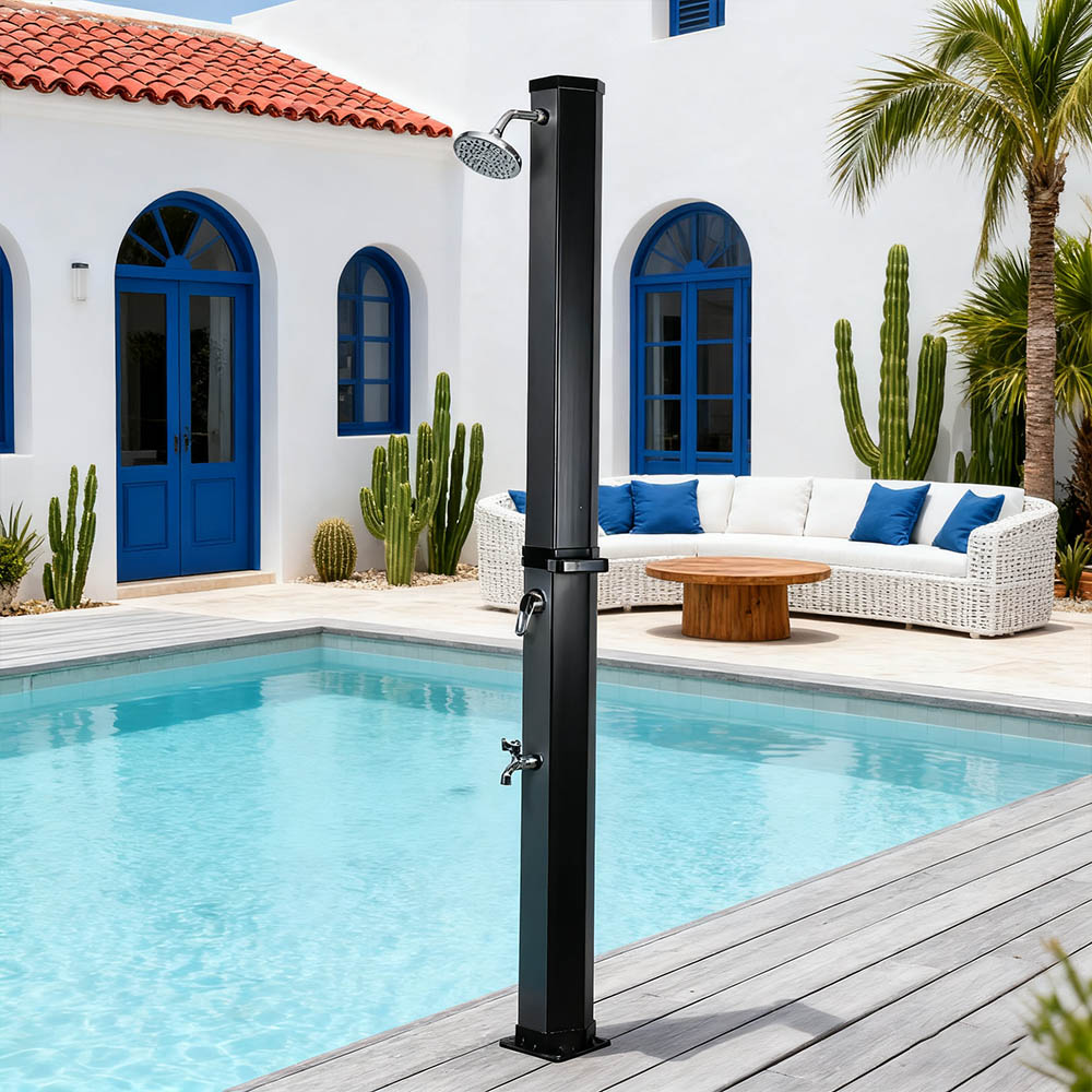 تم تصميم هذا الدش الشمسي الخارجي LY35L09 مع سهولة الحمل والنقل للاستخدام متعدد الاستخدامات، مما يوفر تجربة دش ساخن مريحة في الحديقة أو بجوار حمام السباحة أو أثناء التخييم. لا يعتمد على أي مصدر طاقة خارجي، ويتمتع بسهولة تسخين ضوء الشمس الطبيعي. يتميز بوصلة قياسية لخرطوم الحديقة من أجل تعبئة سريعة وسهلة، كما يسمح قابس التصريف بتفريغ أنبوب الدش بسهولة قبل الشتاء، مما يمنع الضرر الناتج عن المياه المتراكمة. يسمح تصميمها القابل للفصل بالتفكيك السريع والتخزين المدمج، مما يجعلها مثالية للتخزين الموفر للمساحة عند عدم الاستخدام، مع سهولة الحمل والنقل أيضًا، مما يسمح لك بالاستمتاع براحة الاستحمام الخارجي في أي وقت وفي أي مكان.